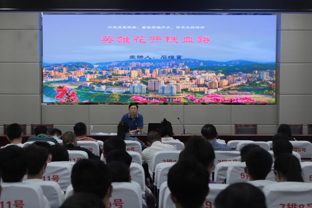 石维富从“坚守实干创新争先”、“铁血成昆”、“致敬成昆”、“英雄花开”四个部分对成昆铁路修建过程中涌现的可歌可泣的英雄事迹进行了详细而生动的讲解,再现了这条“铁血路”伟大而悲壮的建设历程,使师生党员更深入了解“坚守实干、创新争先”的成昆精神,缅怀先烈,珍惜当下美好生活。
